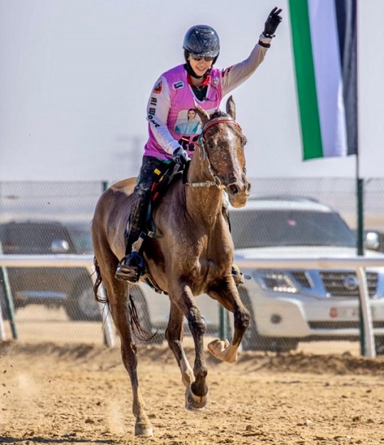 en la CEN 100 km Sheikha Fatma Bint Mansoor Bin Zayed Al Nahyan Ladies Cup, con la monta de Massa Tonbakji, para Al Wathba Stables.