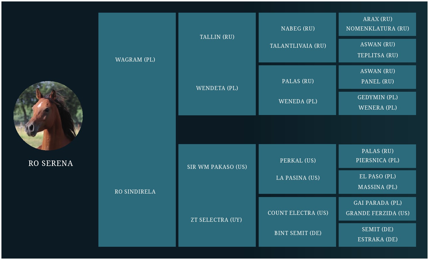 RO Serena también es hermana materna de RO Liberal (RO Attila), ganador de CEI1* 80 km en Argentina (2019).