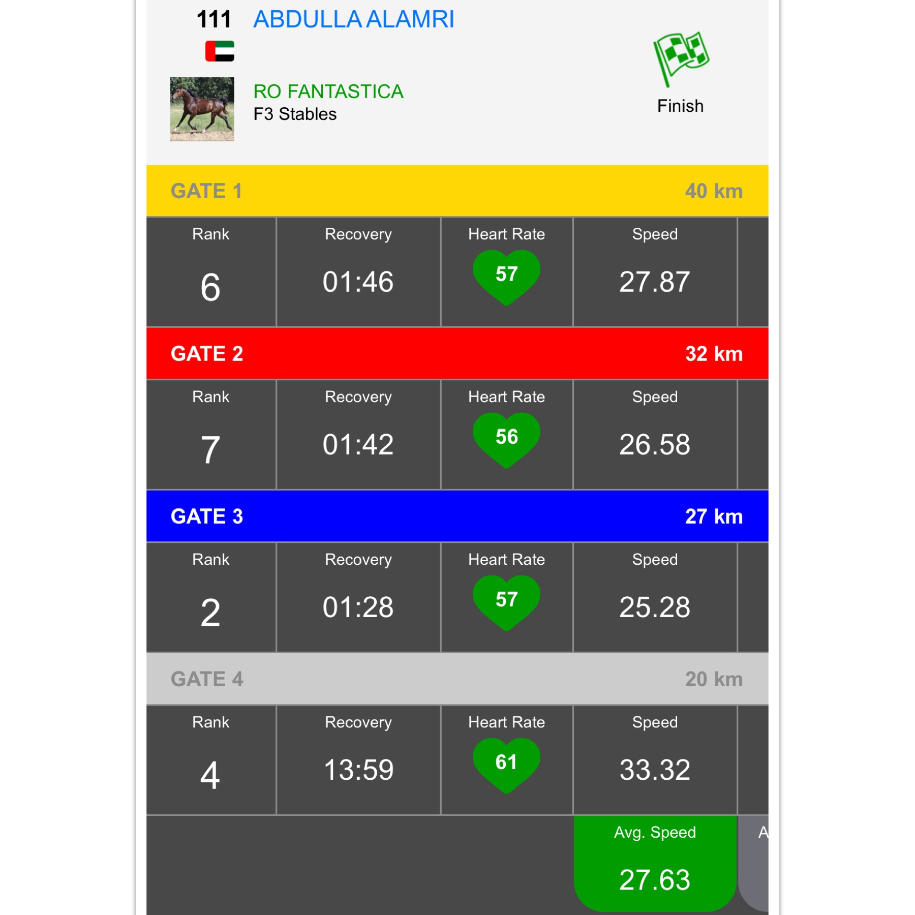 establo F3, propiedad de of Shk Hamdan bin Mohamed Al Maktoum, terminó 4°, en la carrera para yeguas DIEC 119 Km Al Yamamah Cup.
