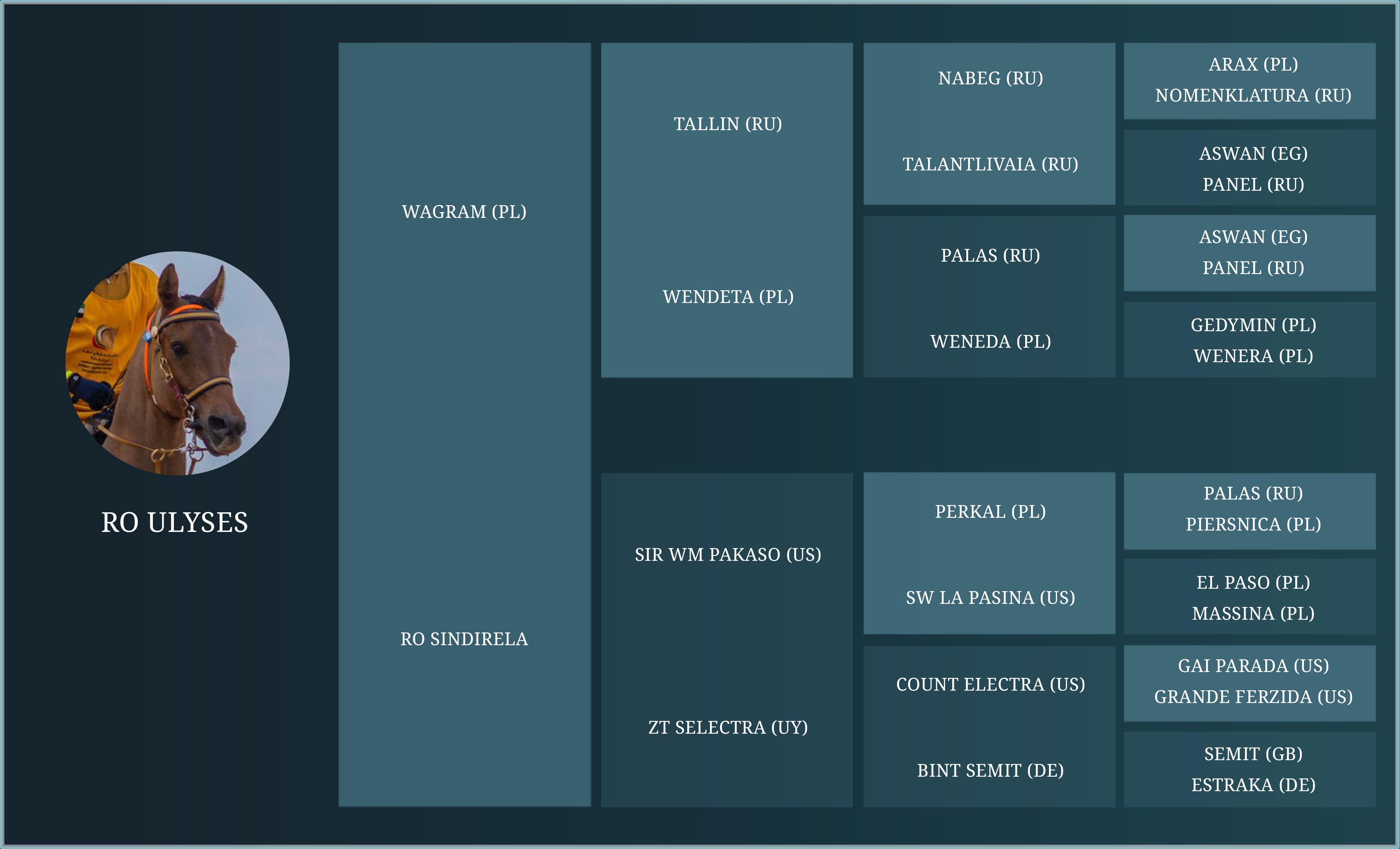 1-            RO NILO (Wagram (PL)), también conocido como “SUPER”, ganador de la edición 2004 de la CEI3* 160 KM President of UAE Cup y de la CEI2* 120KM GCC Regional Endurance Ride, en el mismo año.
