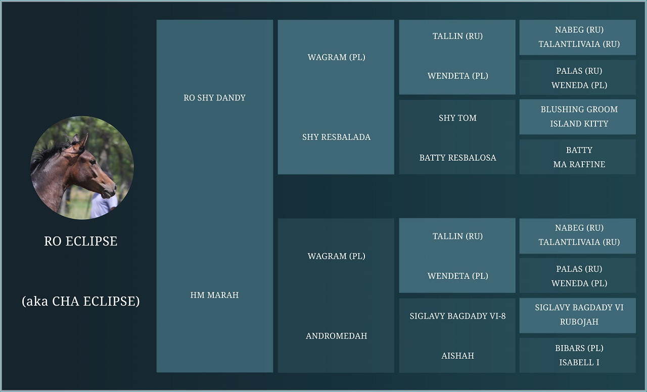 RO SHY MOON es una hija de RO Centurión (Wagram (PL)) y este fue su debut en la distancia (con solo 4/5 meses de entrenamiento en EAU). Su demostración de calidad nos hace suponer un gran desempeño futuro. Ella es hermana materna de RO Shy Dandy y también de otros dos ganadores en Argentina.
